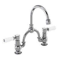 Burlington Claremont: 2 Hole Arch Basin Mixer Tap (Chrome & White, 230mm).