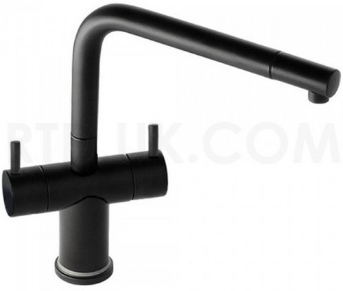 Aurora twin lever kitchen tap in matt black with LED temperature indicator and swivel spout.