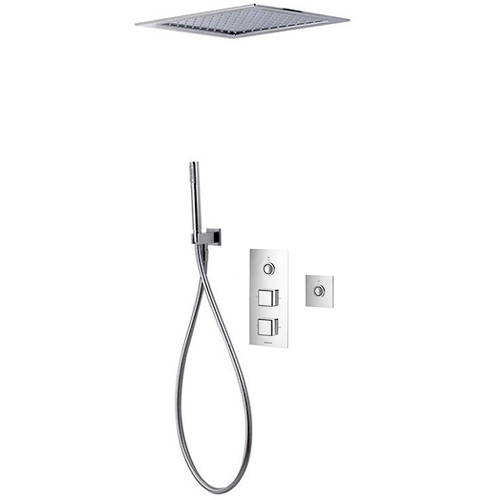 Aqualisa Infinia Digital smart shower pack 66 for combination boilers and high pressure systems (thermostatic). Complete with, remote control, flush fit square shower head with LED lights, shower kit and chrome/white Piazza handles.