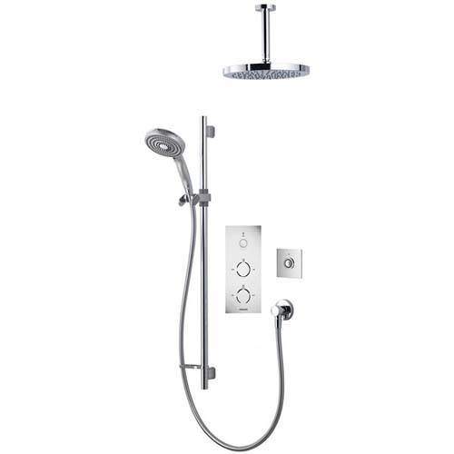 Aqualisa Infinia Digital smart shower pack 46 for combination boilers and high pressure systems (thermostatic). Complete with slide rail kit, valve, remote control, 250mm round shower head, ceiling mounting arm and chrome/white Tondo handles.