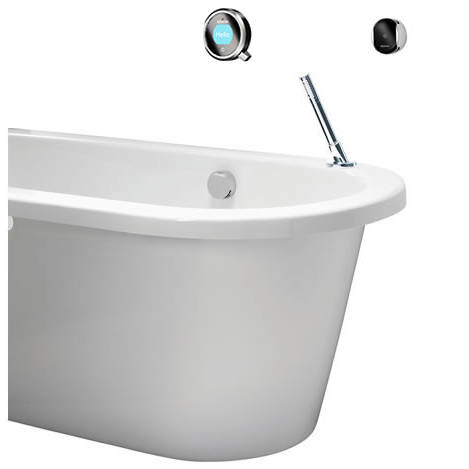 Aqualisa Q Edition digital smart shower / bath filler tap pack 09BC for combination boilers and high pressure system (thermostatic). Complete kit with dual shower outlet mixer unit, controller, wireless remote control, bath overflow filler, hand shower, inertia reel accessory pack and metallic black chrome accent pack.