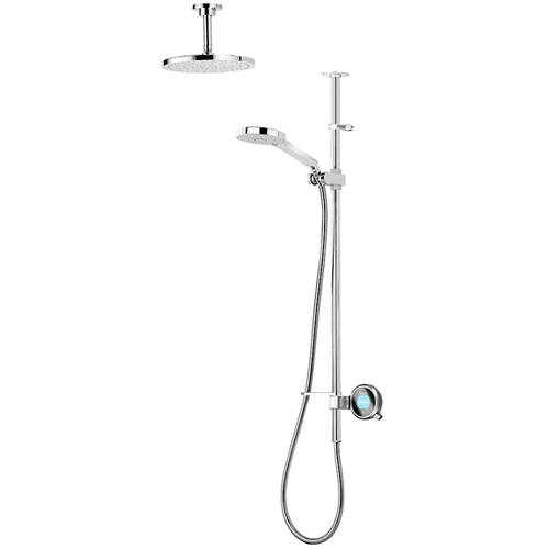Aqualisa Q Smart digital shower pack 24GR for gravity pumped systems (thermostatic). Complete kit with mixer unit, controller, ceiling fed adjustable slide rail kit, round shower head, ceiling mounting arm and shadow grey accent pack.