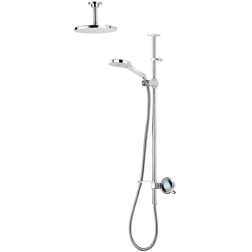 Aqualisa Q Smart digital shower pack 24W for gravity pumped systems (thermostatic). Complete kit with mixer unit, controller, ceiling fed adjustable slide rail kit, round shower head, ceiling mounting arm and polar white accent pack.