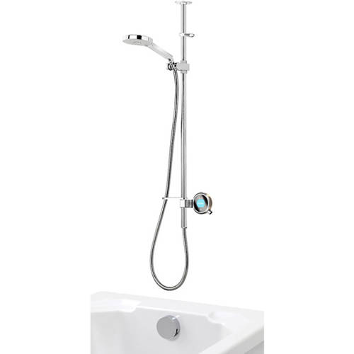 Aqualisa Q Smart digital shower pack 25N for combination boilers and high pressure system (thermostatic). Complete kit with mixer unit, controller, ceiling fed adjustable slide rail kit, bath fill outlet and metallic nickel accent pack.