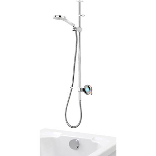 Aqualisa Q Smart digital shower pack 25OR for combination boilers and high pressure system (thermostatic). Complete kit with mixer unit, controller, ceiling fed adjustable slide rail kit, bath fill outlet and sunrise orange accent pack.