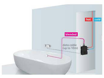 - Valve unit can be located up to 10 metres away from the bathing area (data cable included).
