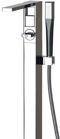 Freestanding bath shower mixer tap with shower kit in chrome (990mm high). Operates at a minimum water pressure of 1.0 bar.