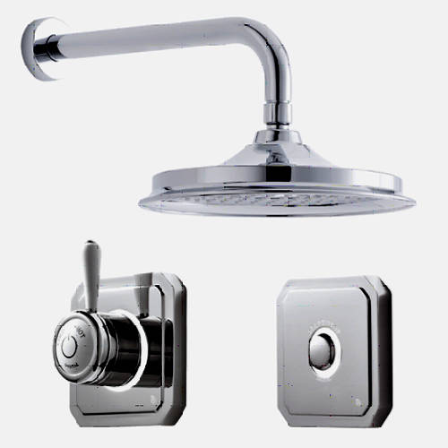 Classic 1910 single outlet digital shower valve with LED colour changing lights, lever handle, processor unit, remote control, wall mounting arm and 6" Air Burst Showerhead (high pressure systems).