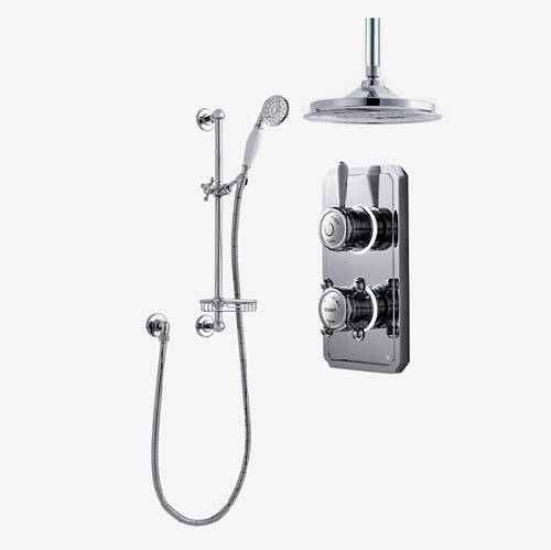 Classic 1910 two outlet digital shower pack with LED colour changing lights, lever handle, processor unit, 6" shower head, ceiling mounting arm and traditional slide rail kit with soap basket (high pressure systems).