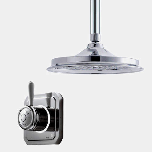 Classic 1910 single outlet digital shower valve with LED colour changing lights, lever handle, processor unit, ceiling mounting arm and 9" Air Burst Showerhead (low pressure systems, pumped).