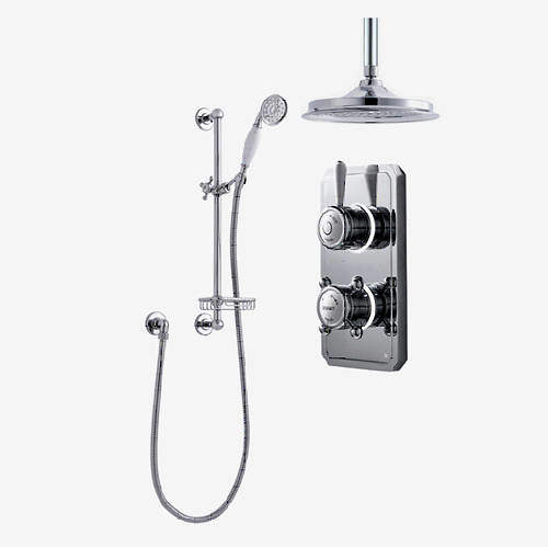 Classic 1910 two outlet digital shower pack with LED colour changing lights, lever handle, processor unit, 6" shower head, ceiling mounting arm and traditional slide rail kit (low pressure systems, pumped).