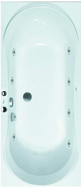 Stratos 1800 Blue Whirlpool Bath with chrome whirlpool system.