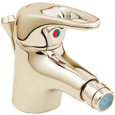 Mono bidet mixer tap in gold with pop up waste. This product can be fitted with a Deva flow restrictor to reduce water wastage and protect the environment.