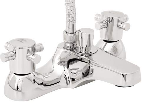 Bath shower mixer tap with shower kit. This product can be fitted with a Deva flow restrictor to reduce water wastage and protect the environment.