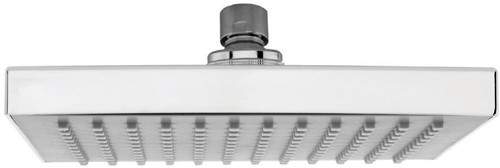 8" Square shower head in chrome with swivel joint. Minimum pressure required is 0.5 bar or above.