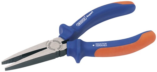 Flat nose pliers. 160mm. Expert quality, drop forged from chrome vanadium steel, hardened and tempered. With a lacquered finish for corrosion protection with heavy duty, soft grip handles with slip guards. Manufactured to DIN Standard.