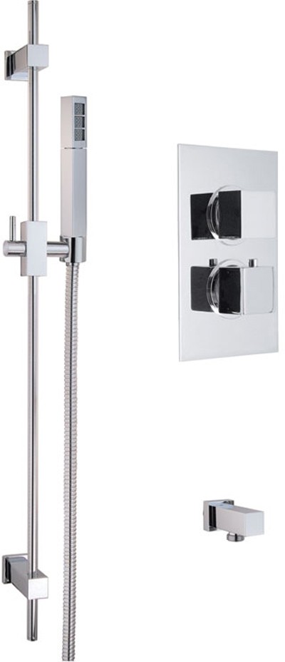 Concealed thermostatic two handle 1/2" shower valve with single function slider rail kit and wall elbow. Recommended minimum water pressure 2.0 bar.