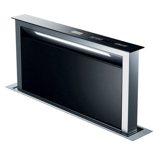 Downdraft 794cm cooker hood in stainless steel and black with remote control.