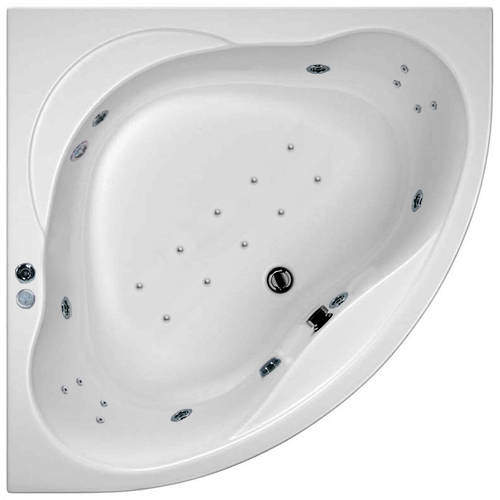 Hydrabath Laguna corner whirlpool bath with 24 jets, legs, pre-fitted pump, underwater LED light and front panel (1450x1450mm).
