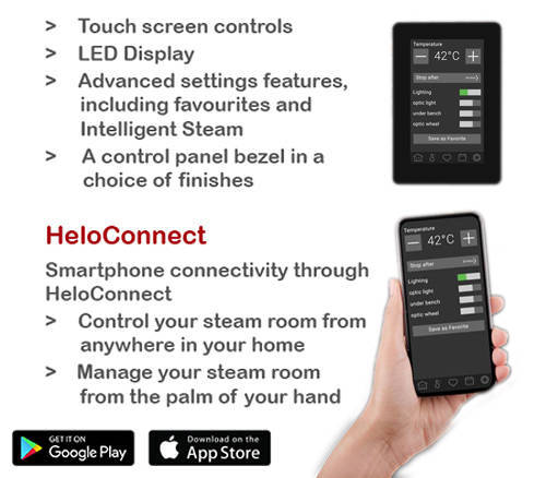 Helo steam generator AW18 with Elite smart controller and chrome wall outlet (26m/3 maximum area).
