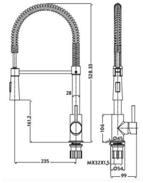 Hydra Braga rinser kitchen tap in brushed steel finish with swivel spout.