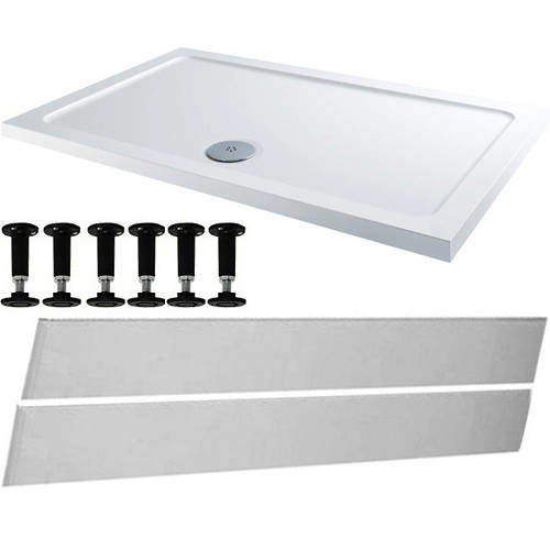 Tuff Trays rectangular low profile stone resin shower tray in white finish with easy plumb kit (1700x700mm).