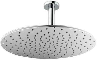 Extra large round shower head and ceiling mounded arm with swivel knuckle. Size 400mm in chrome. Minimum 1 bar water pressure required.