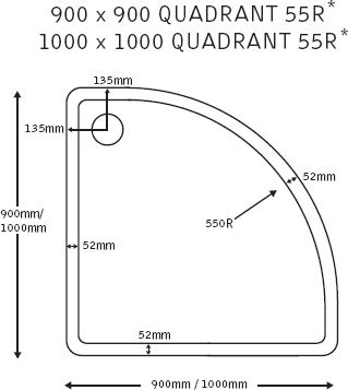 Slimline quadrant shower tray. Matt white, size 1000x1000x40mm. Includes dedicated 90mm chrome shower waste.