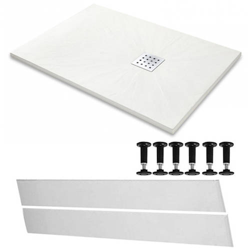 Slate Trays rectangular shower tray in white slate effect finish with chrome integrated waste and easy plumb kit (1200x900x27mm).