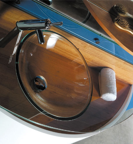 Windsor wall hung glass basin set with illuminated mirror and tap.