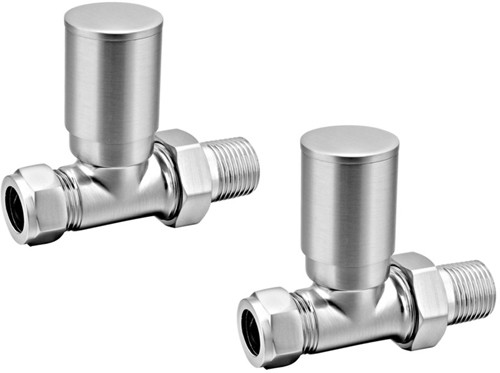 Thermostatic heating element pack for towel radiator in brushed chrome with modern straight valves. 600 Watts.