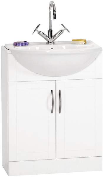 610mm White Vanity Unit with Monte Carlo semi-recess basin.