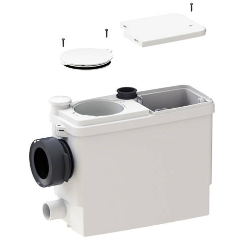 Saniflo Sanipack small bore macerator pump for use with back-to-wall and wall hung sanitary ware. The pump can be concealed behind a wall panel. The stylish way to add a washroom, shower unit or even a complete en suite shower room or bathroom in a basement or loft extension - or in any home improvement where conventional large bore pipework is impractical. Saniflo Sanipack will take waste and water from a complete shower room
