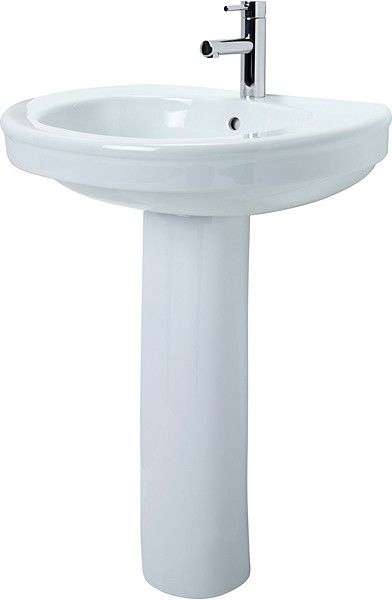 Basin and pedestal with 1 tap hole. Size 655W x 510D x 830H mm. Tap and waste not included.