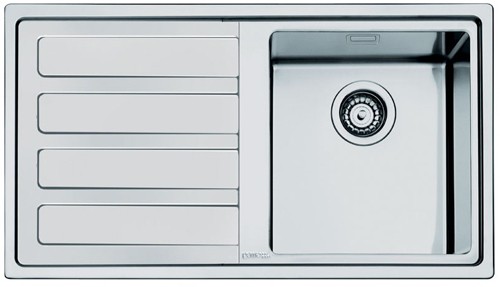 Mira 1.0 single bowl, low profile inset kitchen sink in stainless steel with left hand drainer.