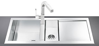 Smeg Sinks 1.5 Bowl Low Profile Stainless Steel Sink, Right Hand Drainer.