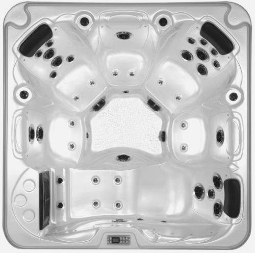 Hydra 6 person Hot Tub in silver white marble with chocolate cabinet and brown cover. Size: 2000x2000x850mm.