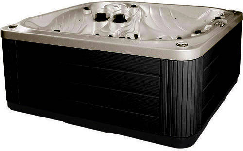 Neptune 5 person Hot Tub in oyster opal with black cabinet and brown cover. Size: 2300x2300x995mm.