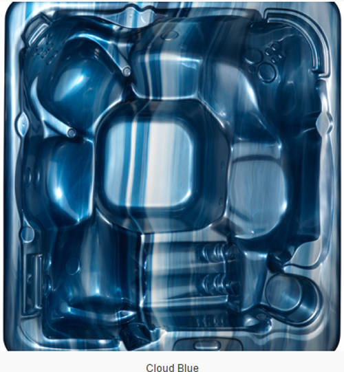 Neptune 5 person Hot Tub in cloud blue with light yellow cabinet and light yellow cover. Size: 2300x2300x995mm.
