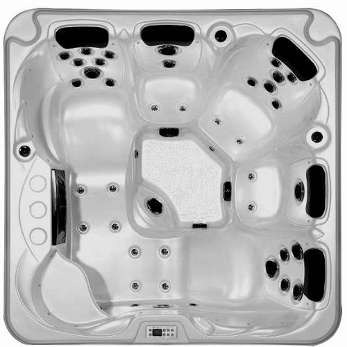 Ocean 5 person Hot Tub in silver white marble with black cabinet and brown cover. Size: 2000x2000x850mm.