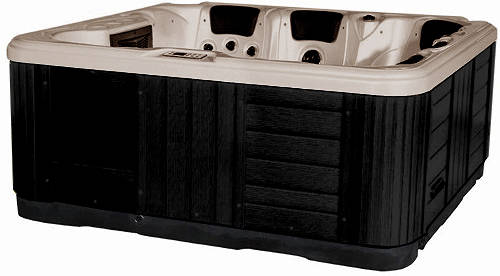 Ocean 5 person Hot Tub in oyster opal with black cabinet and grey cover. Size: 2000x2000x850mm.