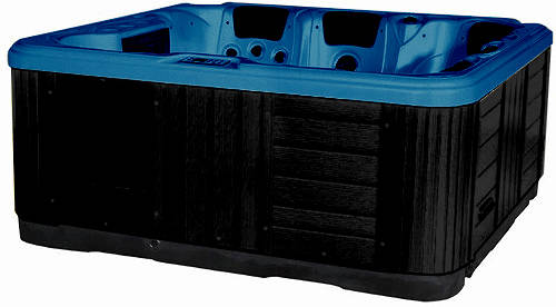 Ocean 5 person Hot Tub in cloud blue with black cabinet and brown cover. Size: 2000x2000x850mm.