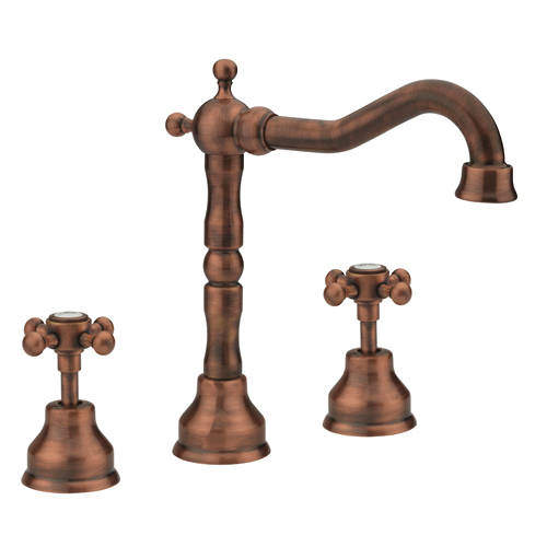 Tre Mercati Allora 3 hole basin mixer tap in copper finish with waste.