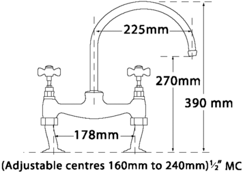 Imperial dual flow bridge pillar kitchen tap in chrome.