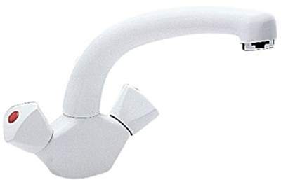 Special Economy dual flow mono sink mixer kitchen tap in white with triangular handles.