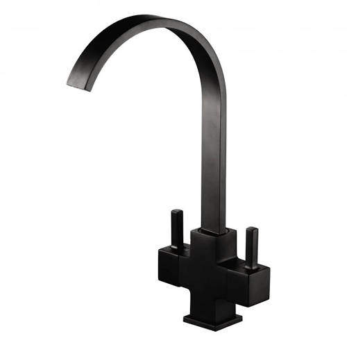Tre Mercati Winston mono sink mixer kitchen tap in matt black finish with lever handles and swivel spout.
