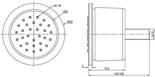 6 x Adjustable round body jets in chrome.