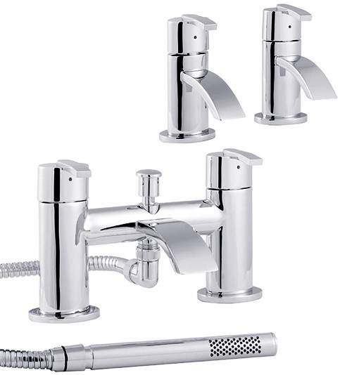 Basin taps and bath shower mixer tap set in chrome with free shower kit.