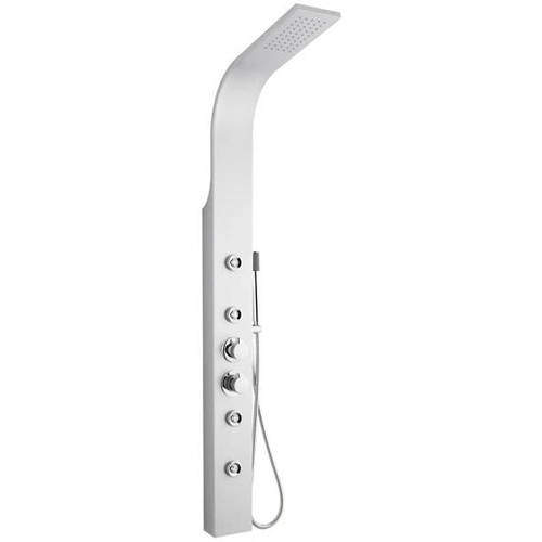 Peyton thermostatic shower panel in matt silver.