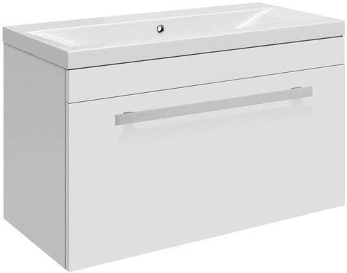 Design wall mounted vanity unit in white with ceramic basin (option 2).
